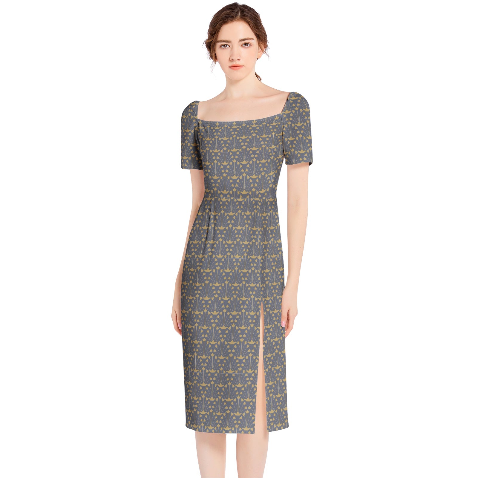 Short sleeve, Bodycon, Split thigh, Side hidden zipper, Women's elegant midi dress